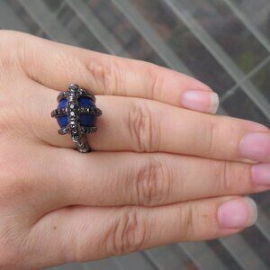 Stunning Auth Stephen Webster Verne Pearl Bone Blue Lapis Black Diamond 18k Black Gold Ring.