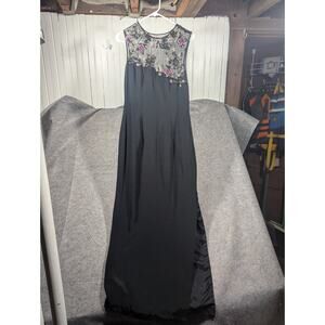 Stephen Yearick Black Formal Floral Beaded Top Evening Y2K Silk Dress Size 12