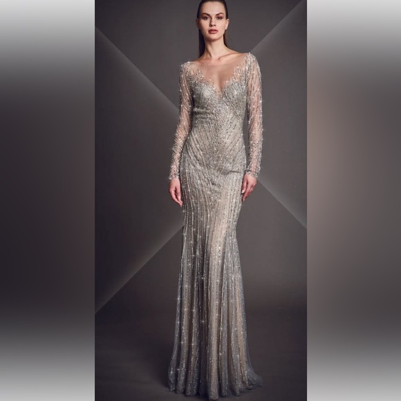 Silver, beaded, elegant bridal gown in great condition only worn once