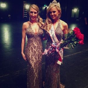 This beautiful full beaded National quality taupe pageant gown is the perfect choice for your next event! Originally paid $3990 for this dress! Only worn once and still have original tags! Size 2/4