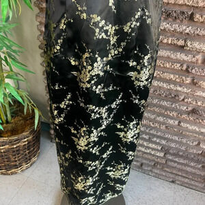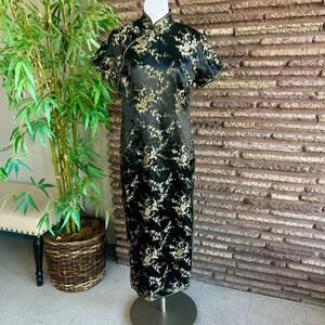 Stephen's Collection Black Gold Cherry Blossom Cheongsam Maxi Dress Size 4