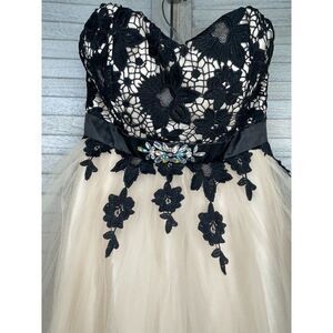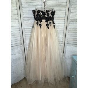 ~ Gorgeous Black & Champagne floor-length, strapless maxi dress.