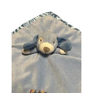 Blue “Little Buddy” puppy dog baby lovey/security blanket. Brand is Stepping Stones Presented in good condition, tag is faded. Some pulls on the satin edge and underside. No stains or holes.