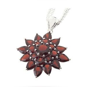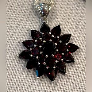 Sterling 13.50 Ct tw Garnet Cluster pendant w/18” magnetic clasp chain.
