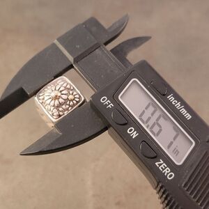 Fabulous vintage sterling silver and 14k flower motif signet style ring. This ring has a nice weight and feel.