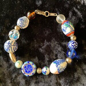 Sterling 925 Ceramic Glass Cloisonne Beaded Bracelet Chinese Jordan 8"