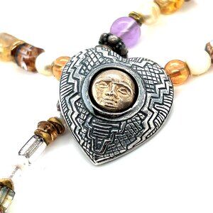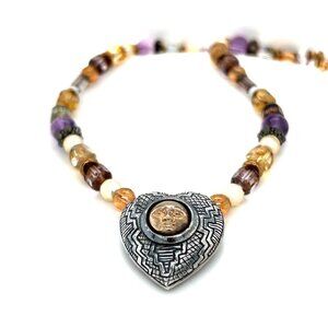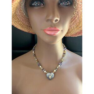 Sterling Silver 925 Robert’s Shields Face Heart Beaded Necklace.