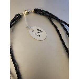 Sterling 925 Silver Triple Stand Black Beaded Necklace 18 inch India