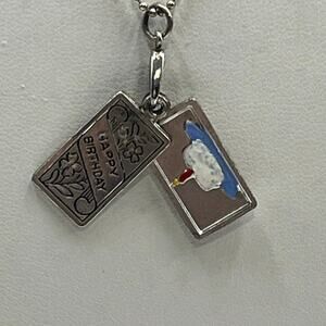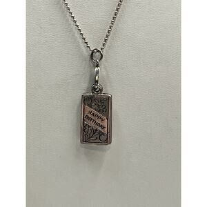 Sterling 925 Vintage Happy Birthday Double Rectangle Floral Charm Cake Necklace
