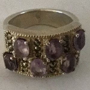 Sterling Amethyst and Marcasite Wide Ring Sz 6