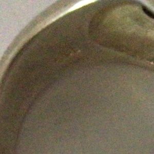 1-1/2” height. Double rows of six amethyst stones, each 3.75mm. Each amethyst is separated by 3 vertical Marcasite for a total of 18 Marcasite. The band is 3/8”-1/2” at its widest and tapering to 1/8”-1/4” at the back of the band. Marked 925 inside band. 9.79 grams.