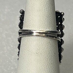 Vintage Oxidized Sterling 925 Artisan Made Rectangular Filigree Floral Ring Beaded Edges Sz 5.25