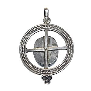 The pendant measures 1 3/4" long by 1 1/8" wide. The piece is unmarked but has been professionally tested to confirm sterling silver quality.