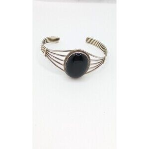 Sterling & Black Onyx Pat Yazzie Navajo Cuff Bracelet