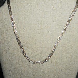 Elegant braided three-strand, multi-colored sterling choker from Vior Italy. The colors of each sterling strand are Silver, Gold, and Rose Gold.
