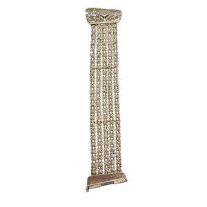 • It consists of five strands, attached to an intricate filigree-style panel