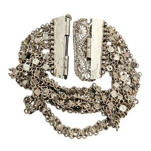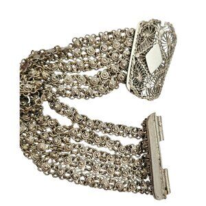Sterling Cannetille Filigree Etruscan Multi Strand Pin Buckle Bracelet C576