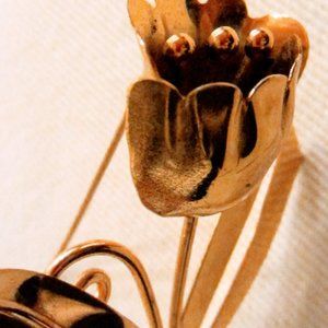 Signed by Sterling Craft, A gorgeous tulip bouquet vintage brooch. Excellent condition, with 2.5" dimension. Golden Statement. By American Designer Coro, signed in etch with logo in circular motion.
