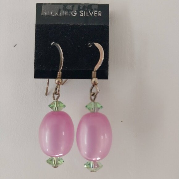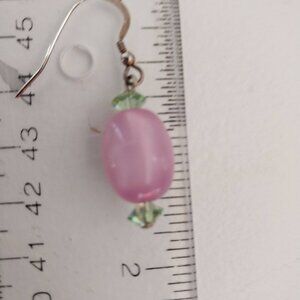 I love this combo of pink and green. Made with vintage Moonglow Lucite and Swarovski crystals. Sterling ear wires.Moonglow lucite is a vintage, glowing acrylic plastic from the 1940s-60s, known for its milky, inner luminescence mimicking moonstone. It's a type of thermoset plastic that could be molded and carved, giving it a beautiful, lustrous finish that's still sought after today. I harvested the lucite from an old necklace myself. They are a tiny bit over a 1/2 inch tall. If you need more pictures or have a question please do not hesistate to ask. Thank you and please check my other listings.