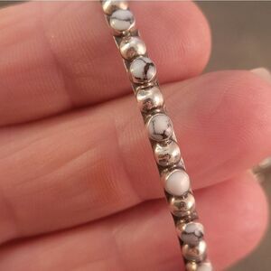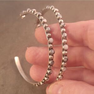 Sterling Extra Large Dendritic Stone and Sterling Bead Hoop Earrings