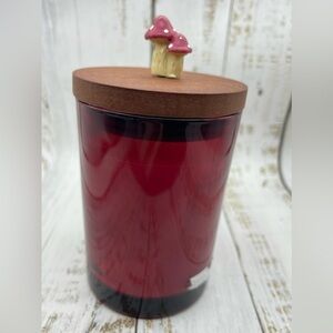 Features a reusable wooden lid adorned with two Amanita sculpted mushroom figures!! This candle smells amazing by the way.