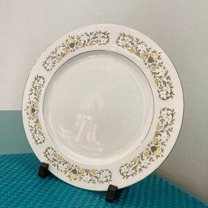 Sterling Fine China, Japan, Florentine White and Yellow Flowers 1 Dinner Plate