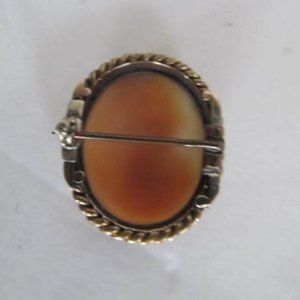 Sterling & Gold Cameo Pendant Carved Shell Cameo Brooch Silver Antique Cameo