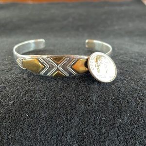 Delicate sterling silver cuff bracelet enhanced with gold plating. Fits 6” - 7” wrist, but is quite flexible to make a larger or smaller fit.