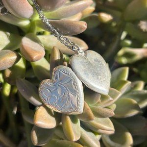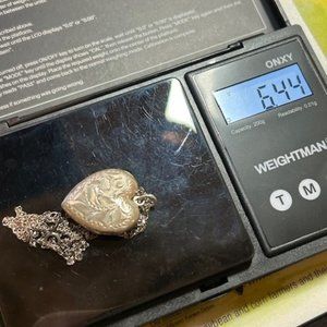 ❤️❤️ Sterling Heart Etched Locket & Chain Vintage Necklace