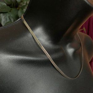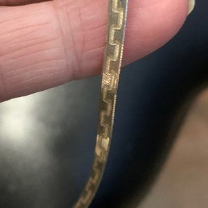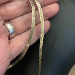 Older vintage sterling necklace. Herringbone on one side, textured Greek Key design on the other, so can be worn either way. 18" long with a secure lobster-claw clasp. Stamped 925 Italy and Italy on the clasp ends. No kinks or bends in this loverly piece. D1422
