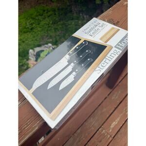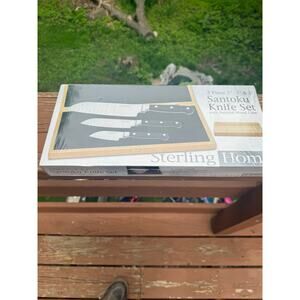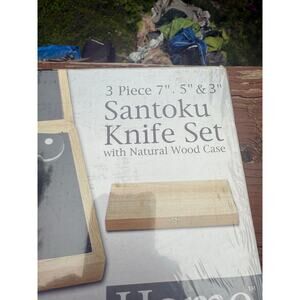 Sterling Home 3 Piece Santoku Knife Set with Natural Wood Case. Brand new in box - still wrapped!! Great value for high quality knives!!