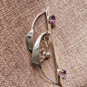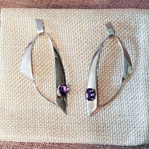 Sterling Hoop Amethyst Earrings
