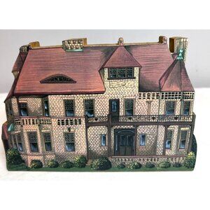 This wooden miniature features a detailed depiction of the historic Sterling House in Stratford, CT. A collectible piece for architecture enthusiasts.