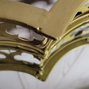 preowned see pics for wear on the brass. bottom has a bent spot but hard to tell when on counter.
