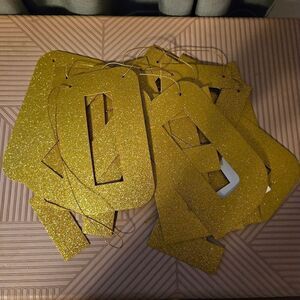 6.5 ft long or can cut the string and make two lines. Glitter Gold Letters