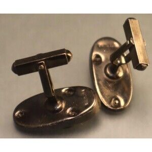 Fun vintage cuff links are sterling silver Japanese zori sandals. Theyre composed of black japanned metal with scenic engraving, very pretty. These have the typical bullet backs and are marked "Sterling".