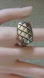 Cool looking ring from a popular designer. This is a man's size 11 sterling ring by John Hardy. This heavy ring is 15.6 grams. Marked inside with the designers mark. the sides have a snake scale detailing with the top having a quilt pattern. Low profile ring so won't catch on everything and is very comfortable. Not new but cleaned and given a buffing to brighten silver and lessen the look of wear. Not too early to shop for Dad!
