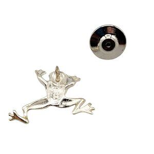 Sterling silver crazy leaping frog tie tack with push closure. Smooth body. Marked STER on the back.Features: