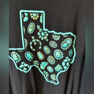 Black t-shirt by Sterling Kreek. Comfortable and stylish. Texas tshirt with turquoise jewelry pieces put on it