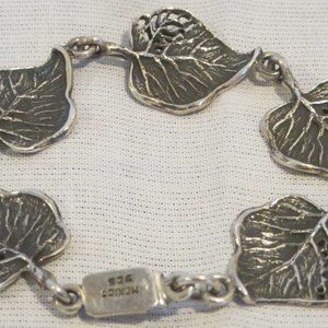 This vintage bracelet features 5 leaf links and is marked “925 MEXICO”. It weighs 19.75 grams and measures 7 ¾” x ¾”.