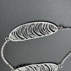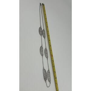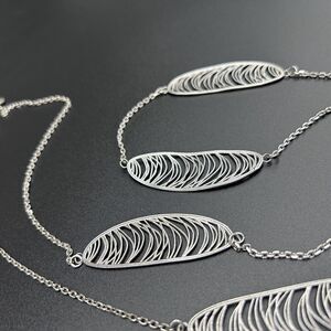Sterling Leaf Wispy Oval Station Modernist Necklace Marked RCI 925 Italy 35in