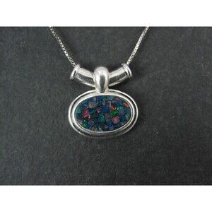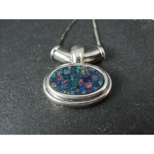 Sterling Mosaic Opal Inlay Pendant Necklace