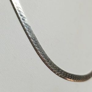 This is a wonderful piece of sterling silver jewelry to own because you can wear it with any outfit just by itself. Or if you chose, you could wear a pendant on it. The necklace is 18 in long and it is 5 millimeters wide. It is an absolutely beautiful necklace stamped 925.