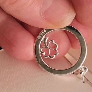 New in box sterling silver four leaf clover God inspirational saying open round pendant with sterling silver box chain.