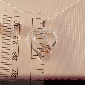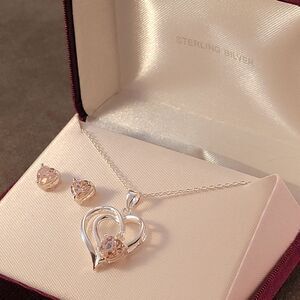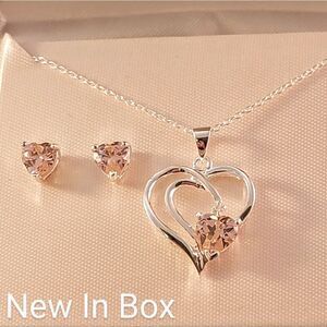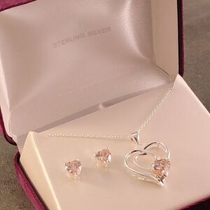 New in box sterling light pink heart cubic zirconia pendant necklace and stud earrings set.