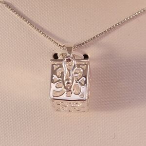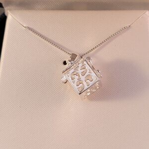 Darling new in box tarnish free sterling silver (925) scroll openwork prayer box pendant.