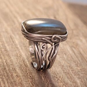 Sterling Paz Israel Labradorite Rextangle Bezel Set Organic Swirl Statement Ring