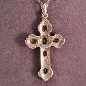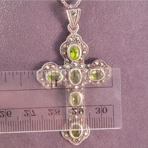 Sterling Peridot Cubic Zirconia Marcasite Cross Pendant Necklace
