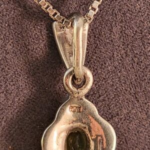 Elegant peridot cubic zirconia and marcasite cross pendant paired with a sterling silver 18" box chain.