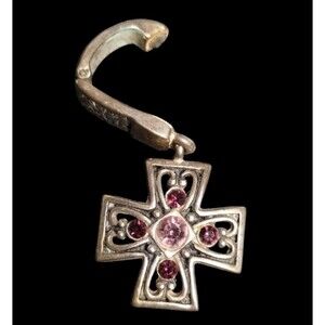 The Sterling Plated Cross Bracelet and Pendant features pink stones and a magnetic clasp for easy closure. The bracelet has a length of 7.5 inches and is designed for females. The set includes both a bracelet and a pendant, both adorned with pink stones in a charming cross design. The style of the jewelry is a mix of chain and charm, emphasizing the theme of the cross. The magnetic closure adds convenience to wearing and removing the jewelry pieces. Necklace chain is not included for the pendant.